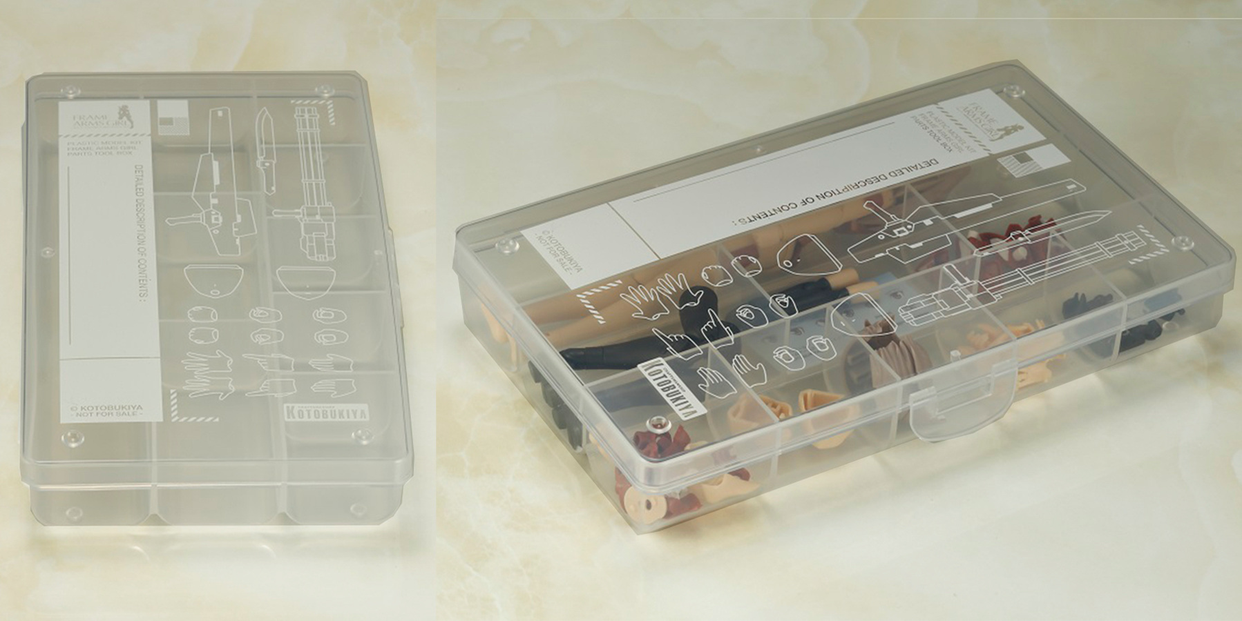 対象店舗で「フレームアームズ・ガール」のプラモデルを購入した方に特製パーツケースをプレゼント!仕切り付きで便利なパーツケースをぜひGETしてくださいね!